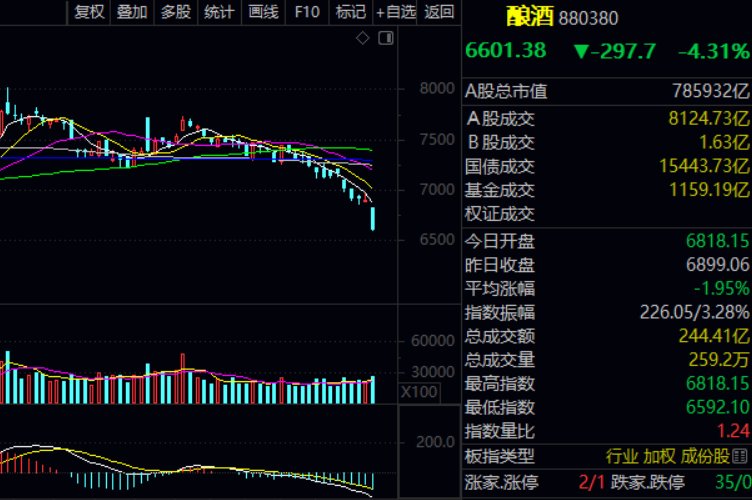 相比于上证A股的跌幅,一些板块的跌得更惨,其中酿酒板块跌幅达4.31%。