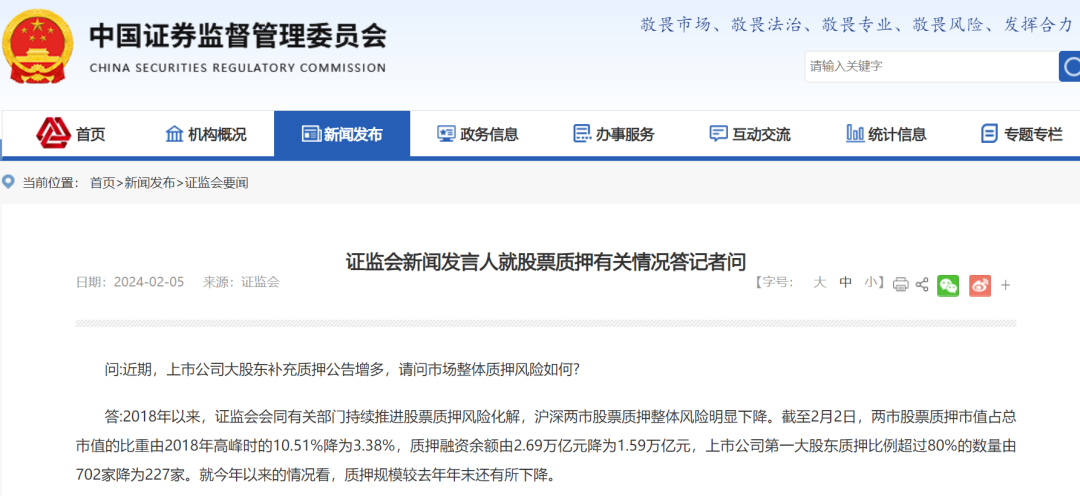 这份《证监会新闻发言人就股票质押有关情况答记者问》提到: