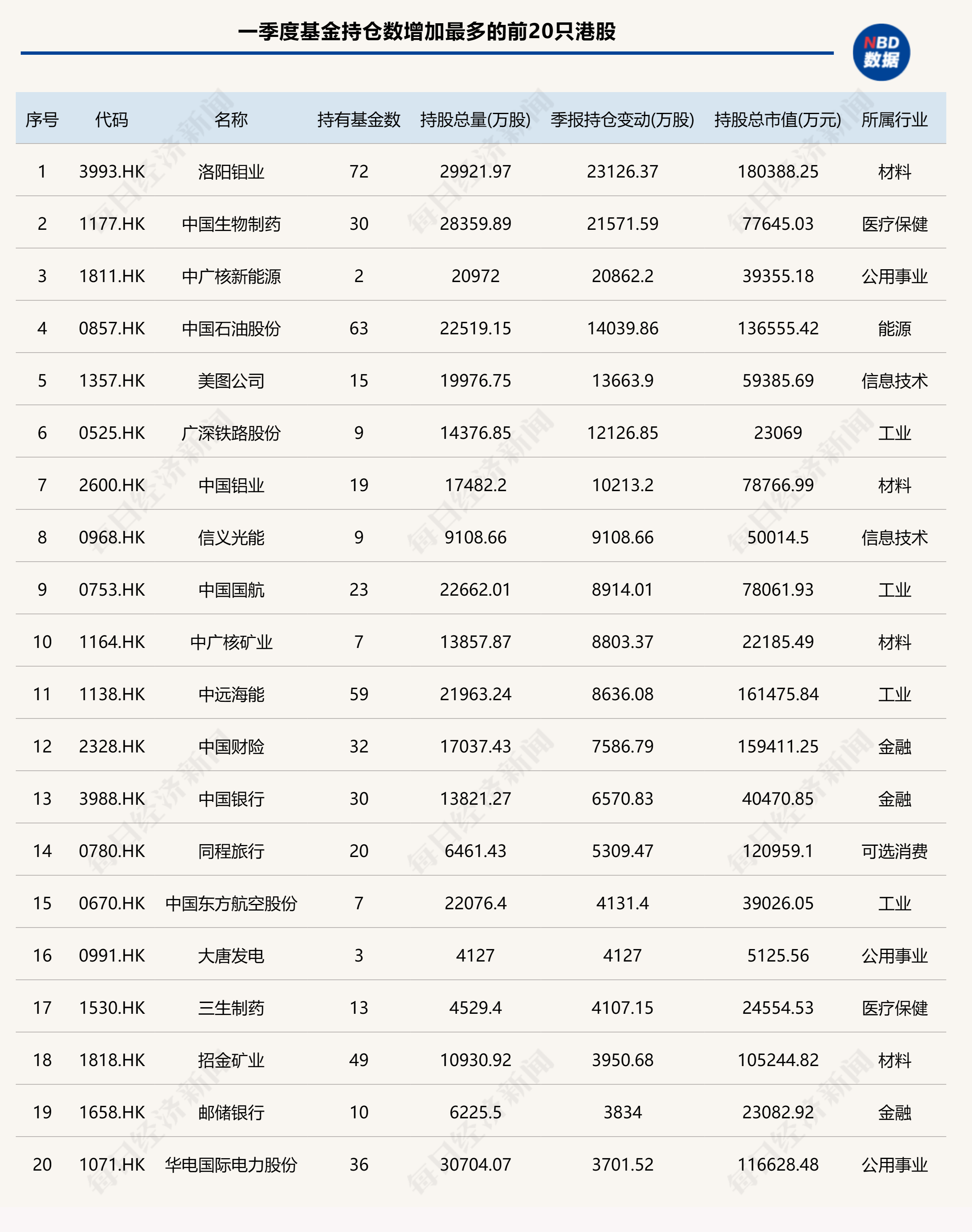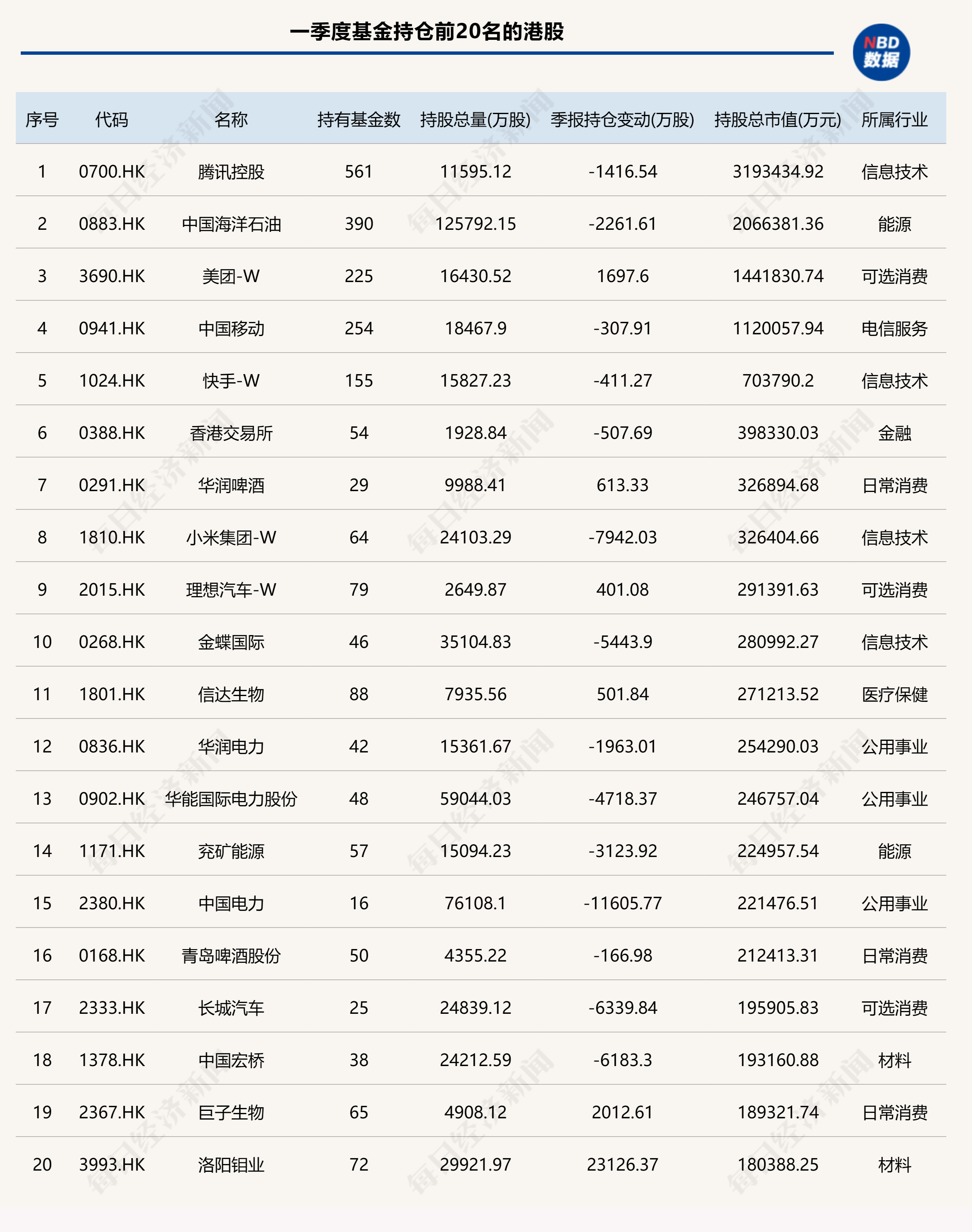 其中腾讯控股、中国海洋石油位居前两位,不过一季度均被基金减持。