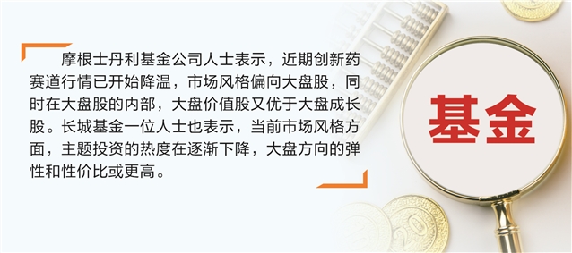 摩根士丹利基金公司人士对此分析,近期创新药赛道行情已开始显著降温,市场风格显著偏向大盘股,同时在大盘股的内部,大盘价值股又优于大盘成长股,基于中期操作角度看,A股市场仍将沿着中国制造的主线演绎,看好高端机械、汽车、军工的优质公司,同时在消费赛道关注那些牢牢占据国内市场主导地位、海外市场拓展也极为顺利的品种,这些因素将成为上市公司业绩的新增长点。